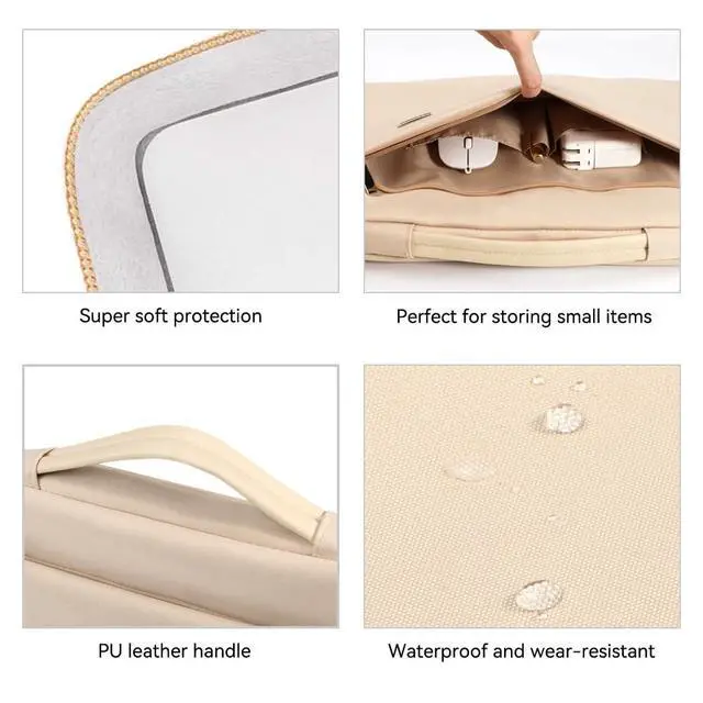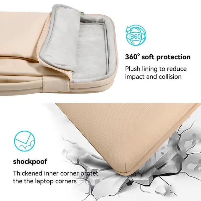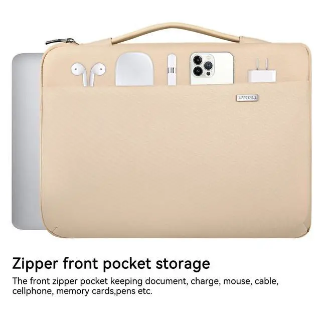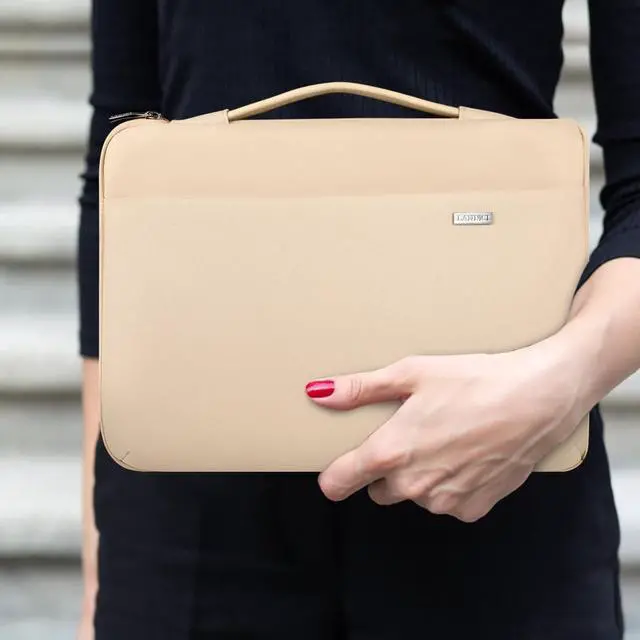 degrees 3 layers protection: protect your tablet or laptop against dust, dirt, scratches and bump ^^ Well Organized - The front big accessory compartment has 2 small pockets inside can store enough accessories such as your phone, iPad Pro, mouse, power charger, pens pencils and other office supplies, classify for your common items ^^ Side Laptop Pocket Design - Special side laptop pocket with easy glide top-quality zipper, this design makes your laptop far from being dropped accidentally. It won't snag or catch your laptop upon opening or closing ^^ Slim and Easy Carry - Carry with the comfortable and flexible leather handle, easy to stretch, slipped inside your backpack, messenger bag or briefcase. It's widely for man or women lady for office