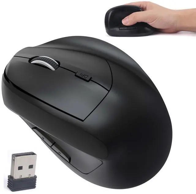 Box: 1 * Ergonomic Mouse, 1 * USB Receiver, 1 * USB Charging Cable, 1 * User ManualThis vertical mouse wireless adopts ergonomic design, reliable connection, and is compatible with multiple systems and multiple devices. It is your right-hand man for easy and efficient work.