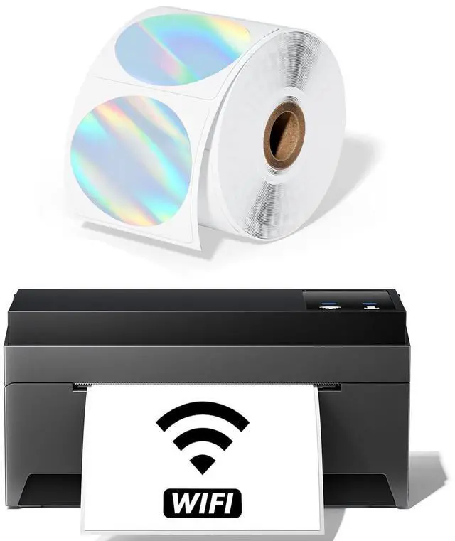 Wireless Shipping Label Printer with 2" inch Round Reflective Thermal Labels for Small Business