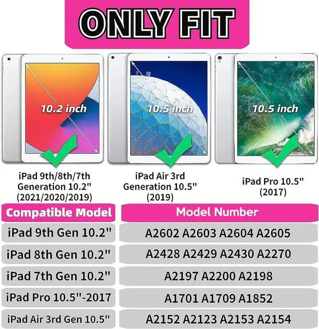 Compatibility: Designed for your iPad 10.2 / 10.5 inch, this iPad case fits various models including iPad 9th Gen 2021 (A2603 A2604 A2605), iPad 8th Gen 2020 (A2270 A2428 A2429 A2430), iPad 7th Gen 2019 (A2197 A2200 A2198), iPad Air 3rd Gen 10.5" 2019 (A2152 A2123 A2153), and iPad Pro 10.5" 2017 (A1701 A1709) ^^ Built-in