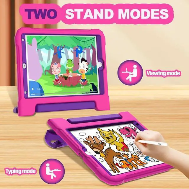 Two Viewing Angles: The 9th generation ipad kids case features a handle stand design with flip functionality, it provides dual viewing angles, allowing children to easily watch videos, play games, or drawing. Additionally, it ensures a secure grip, preventing accidental drops ^^