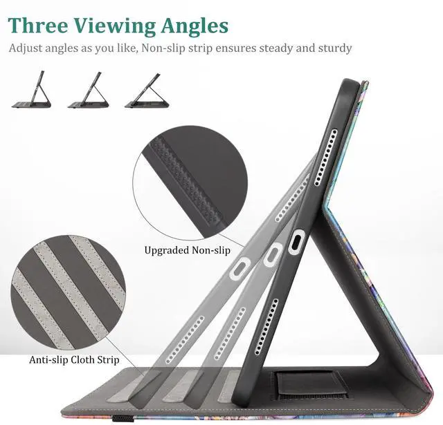 MULTI-VIEWING ANGLES: Different viewing angles meets your different needs for viewing, typing, and writing. Strong Magnetic supports you can stick your iPad on the fridge while cooking.