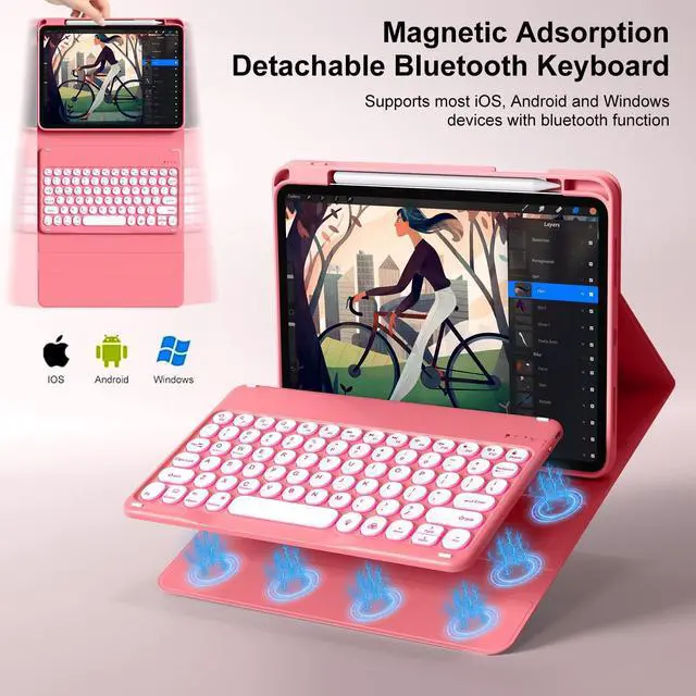 Keyboard case for iPad 11th/10th generationSZPSGC iPad case with keyboard is designed for iPad (A16) 11th generation 11 inch 2025 (Model: A3354/A3355/A3356), iPad 10th generation 10.9 inch 2022(Models: A2696/A2757/A2777). Not for any other models. Please check the model number No. "AXXXX" the bottom of the back of your tablet to confirm correct size before purchasing this iPad case ^^ Magnetically Detachable KeyboardFor iPad 11th/10th gen keyboard is magnetic and it can be strongly attached to the case or detach completely. When you do not need the keyboard can be stored away, easy to carry it on the go. It is easy, fast and stable to connect via bluetooth, reconnect immediately turning it on ^^ Backlit Keyboard for iPad 11th/10th GenThe iPad 11th/10th generation case with keyboard allow you easily switch between adjustble 7 RGB pure backlit with 3 levels brightness with a shortcuts is customized for your tablet, engaging yourself in a free and relaxed typing experience in any dim condition ^^ Multiple Viewing AngleThe iPad A16 11th generation case, iPad 10th Generation 10.9 inch case for drawing or writing on, do more computer, suitable for home, office or school use drawing or writing on, for there are 3 anti-slip grooves design inisde of the iPad 11/10th generation case 11/ 10.9 inch 2025/2022 provides the perfect stand angle, you can change where the tablet is on the iPad case and adjust the screen angle this way ^^ Powerful Power and Multi-FunctionsOur iPad (A16) 11th generation case/ iPad 10th generation case with keyboard built-in powerful power and enters energy-saving mode automatically if not in use for long time, which worry-free use and long standby time.