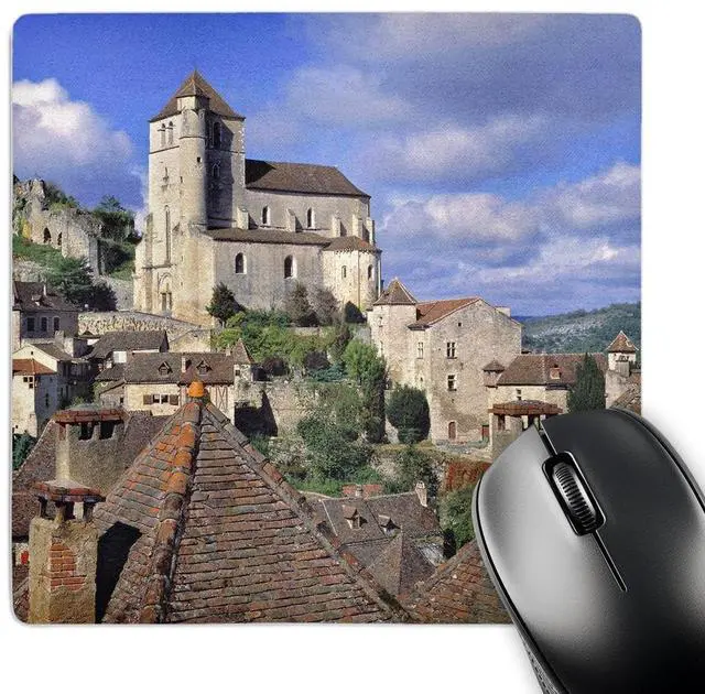 France, St. Cirq Lapopie, red-tiled rooftops - EU09 RER0075 - Ric Ergenbright Mouse Pad is 8" x 8" x. 25" and is made of heavy-duty recycled rubber. Matte finish image will not fade or peel. Machine washable using a mild detergent and air dry.
