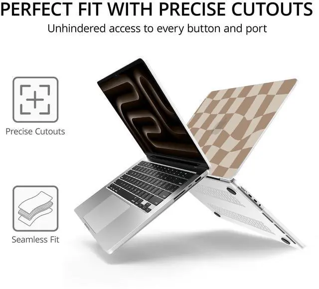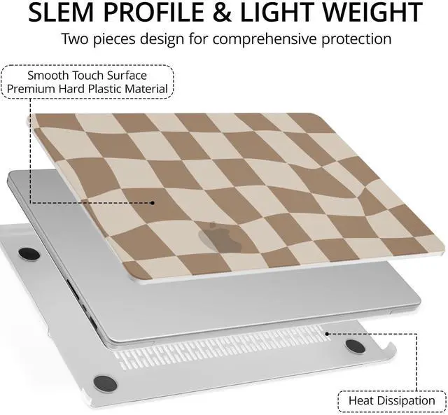 This case provides comprehensive coverage for your MacBook, shielding both the top and bottom from daily wear and tear ^^ Easy InstallationThe case snaps on effortlessly for quick installation and removal, offering convenience without sacrificing security. Designed with strategically placed ventilation slots at the bottom, allowing for efficient airflow to prevent overheating ^^ Package Including1 brown checkeredtop case, 1 matte clear bottom case, 1 brown keyboard cover and 1 screen protector. If there are any problems with our case, we are here to offer support and solutions