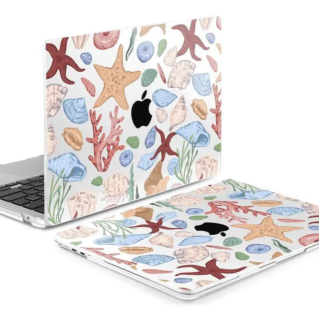 MEEgoodo Case for M4/M3/M2 MacBook Air 13.6 inch Case 2025 2024 2022, Fit Model A3240/A3113/A2681, Laptop Hard Shell with Keyboard Cover Compatible with MacBook Air 13 inch, Starfishes & Shells