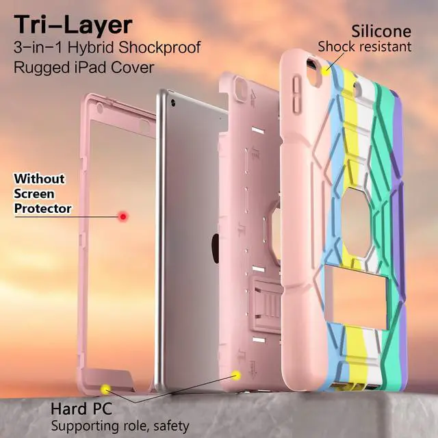 Shockproof Rugged Design: 9.7 Case made of durable Hard PC+Silicone, 3-layer Full Body protection structure, provide a perfect protection, protects your pad 6th/5th Generation 9.7" 2018/2017 from scratches and accidental drops, bumps, and impacts ^^