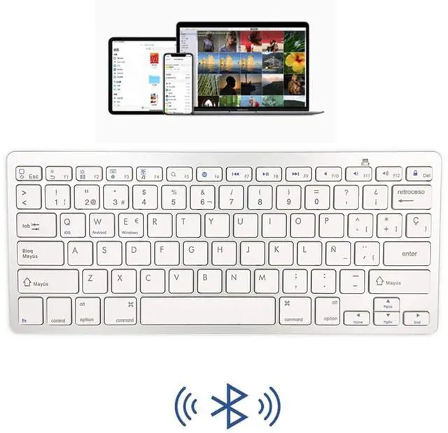 ENHANCE YOUR WORKSPACEWhether you are working from home or taking online courses, our keyboard will give you slim size, comfortable and ergonomic feel. Purpose built for Windows/Apple/Androids Systems, it features a 78-key layout, 6 multimedia keys, 10 languages, 13 shortcut keys, and visually stunning aluminum body. ^^ STRONG WIRELESS CONNECTIONConnect With Bluetooth 3.0, the cordless keyboard establishes a stable connection from up to 32ft away via Bluetooth. This eliminates excess cables and clutter, providing a clean workspace. ^^ A SOPHISTICATED TYPING EXPERIENCEEach keycap on our low profile wireless USB keyboard is designed with a concave shape and scissor flexor technology.