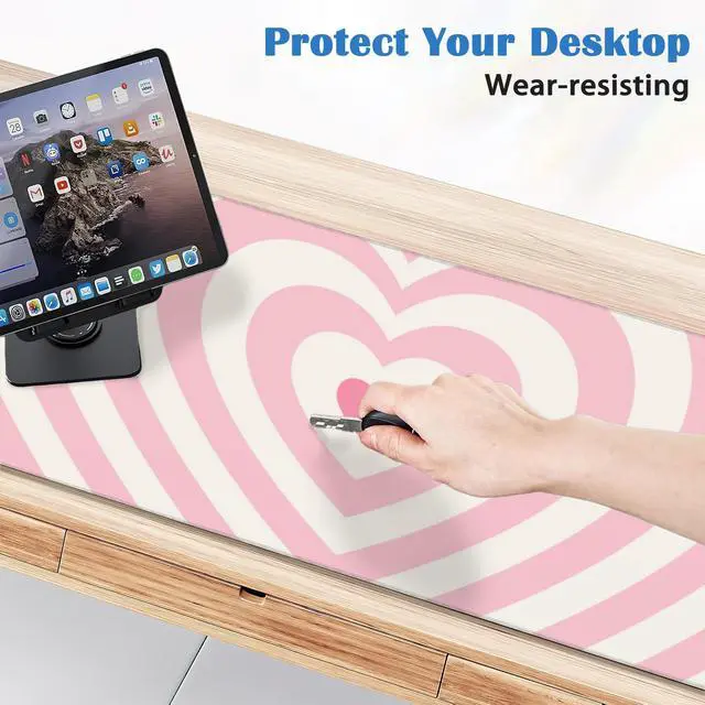 Pink Heart Desk Mat Mouse Pad,Large Gaming Desk Pad Mousepad Computer Laptop Keyboard and Mouse Mat,Desktop Protector Mat for Women Girl Office 31.5x15.7 in