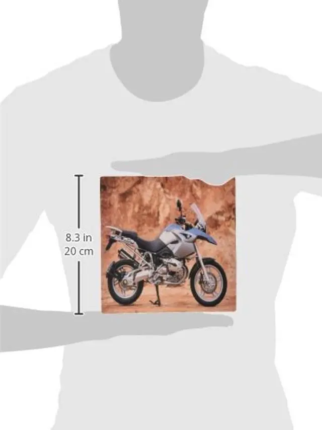 Motorcycle Standing Mouse Pad is 8" x 8" x. 25" and is made of heavy-duty recycled rubber. Matte finish image will not fade or peel. Machine washable using a mild detergent and air dry.