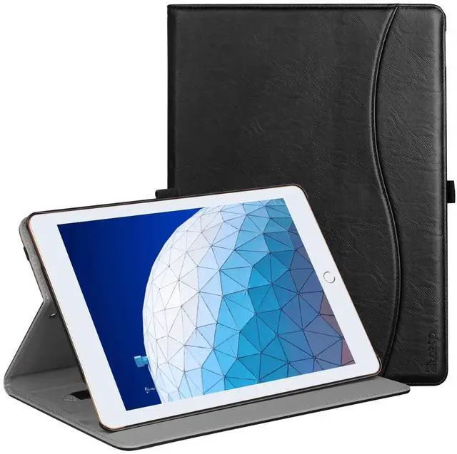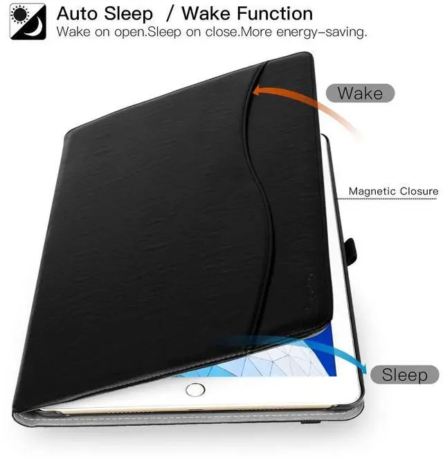 PLEASE NOTE - Exclusively designed for iPad Air 3rd Generation 10.5 inch 2019(A2152/A2123/A2153/A2154) and iPad pro 10.5 inch 2017(A1701/A1709/A1852) precise cut-outs, will NOT FIT other iPad models. ^^ Premium graded material - excellent workmanship with premium synthetic leather exterior and comfortable smooth inner lining provide full protection for your iPad from daily bumps, scratches and accidental drops. ^^ Multi-functional features- built in Leather hand strap, Pencil holder and organizer pocket, the organizer pocket can manage your documents, cards, cash, business cards. ^^ Auto wake & sleep feature The iPad pro 10.5 inch case supports automatically wakes or puts your device to sleep when the lid is opened and closed, saving power and effectively extending battery runtime.