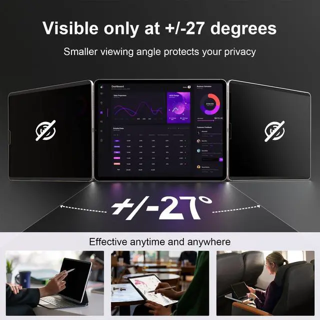 5 seconds to install and remove, no residue and air bubbles. Comes with a high-quality plastic folder, which can keep the iPad privacy screen well when you take off it. ^^ High Definitiona and Sensitivity2025 latest Micro shutter technology make privacy screen iPad Air 7th/8th M2/M3 generation Higher light transmittance creates a high-definition visual experience, which solves the problems of other protective films such as blurring, dizziness, and graininess. The ultra-thin design is 0.2 mm, which keeps the screen highly sensitive, and your Apple pen is accurately and continuously touched without delay. 1:1 precise match with iPad, compatible with all iPad cases.