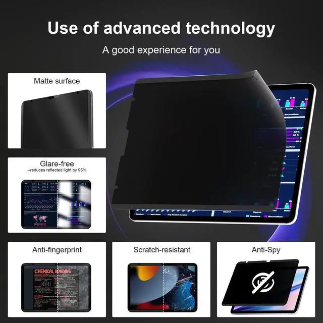 Fit Models: A2902 A2903 A2904 A3267 A3270. and compatible with Apple Pen& other Stylus pens. You can check the model number at the bottom back of your iPad ^^ Privacy Technology Innovation Lets you immerse yourself in whatever reading or watching without worrying about peeking. iPad Air 11 inch privacy screen protector features advanced technologies like micro shutter technology, which reduces the viewing angle to 27. Compared with other privacy screen film, IPROKKO utilizes technological innovation to improve the privacy protection effect. Using antireflective and anti-scratch coating and enhanced magnet strength to meet customers' more needs. ^^ Eye ProtectioniPad Air 6th/7th generation screen protector privacy designed with advanced antireflective coating to block 95% blue light and UV light, effectively protect your eyes from visual fatigue. You can see the iPad air 7/6th generation privacy filter clearly even outdoors, in sunlight or under lighting. ^^ Strong Magnetic SuctionAfter surveying 100 customers, most of them are dissatisfied with the magnetic force of the iPad magnetic protection film. IPROKKO uses strong NdFeB magnets instead of ordinary magnets, which will not fall off even if the magnetic privacy protection film is covered on another PET film.
