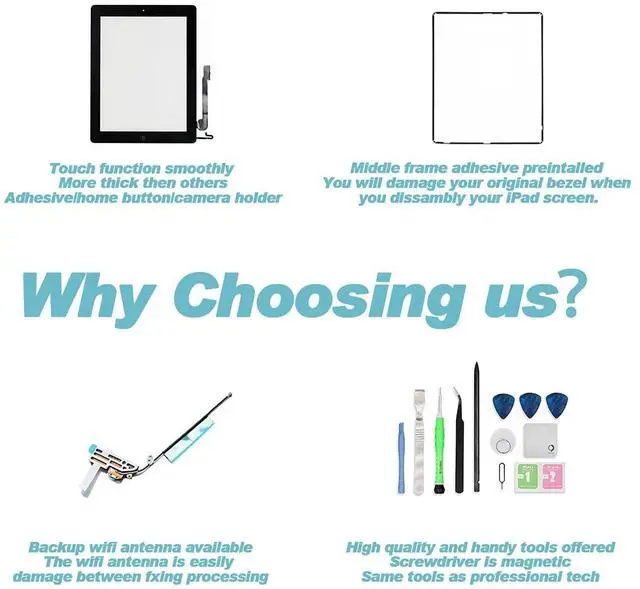 Gen Model: A1474, A1475, A1476 (All WiFi and Wireless Carriers) ^^ Includes x1 White touch Screen Glass Assembly Replacement + x1 Repair Toolkit +x1 Wifi Cable ^^ Free Wifi Antenna offered, When you remove your old screen it is easy damage but no worry we have a replacment for it. ^^ This part makes installing a front panel assembly easier with the adhesive, front facing camera bracket, and blank home button already installed. ^^ Come with High Quality DIY free tools for repair.