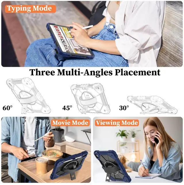 ROTATING STAND: iPad case 10th / 11th generation 360 Rotating Stand with hand strap is designed for the ipad 10.9 case, A16 iPad case providing different angles to meet your requirement, that will be convenient for viewing, typing and drawing, testing in outdoor ^^