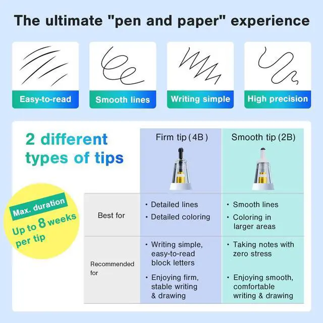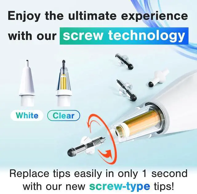 What's more, our "screw lock" function reduces the stress of the tip falling out or sliding when using them. What's more, the pointed tip of the pen allows you to see where you're writing or drawing. You can work on your task comfortably with no latency. The sleeve is made of soft plastic resin instead of metal. It is designed to minimize damage to the screen even if it comes into contact.