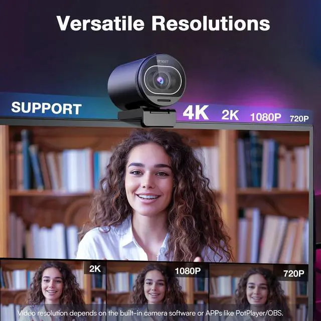 Note: Video resolution depends on built-in camera software or apps like PotPlayer/OBS. ^^ Advanced PDAF Autofocus & Light Balance 4K webcam S600's PDAF (Phase Detection Autofocus) tech offers significant advantages over common autofocus such as faster speed, higher precision, and more stable performance in various scenes features. Its auto light adjustment capability balances shadows and highlights even in low-light environments, keeping every detail sharp and clear on screen, making it ideal for content creators and live streamers who demand top-tier performance and visual quality. ^^ Ideal for Major Platforms and Systems - EMEET S600 streaming camera is fully compatible with Zoom, Skype, Skype for Business, Microsoft Teams, Google Meet, Google Hangout, Cisco Webex, GoToMeeting, Bluejeans, BroadSoft, Lifesize, Slack, Line, and TrueConf, ensuring stable, high-quality calls. Compatible with Windows (Win7, 10, 11) and macOS ( 10.14 and above), it works seamlessly in USB Video Device Class (UVC) mode. Experience unmatched flexibility and HD quality with the streaming webcam.
