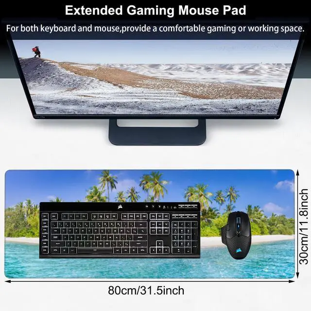 • [Extended Size]The size of this mouse pad is 31.5"x11.8".It is large enough to accommodate your keyboard and mouse perfectly.What's more,you also can put your cups or other stuffs on it.The Large size ensures free movements of your mouse without any interruptions. Therefore,you don't have to continually adjust the mouse mat like the traditional one.It also can protect your desktop from any scratches or stainess.