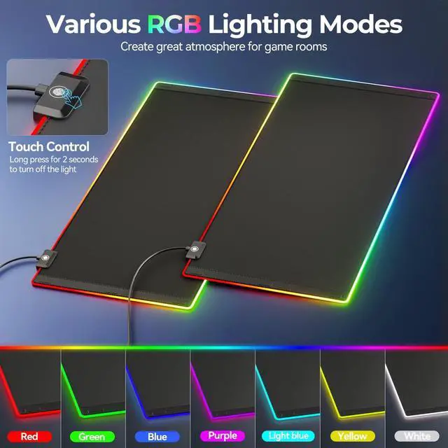 (NOTE: 15W need power adapter 9V 2A, but power adapter is not included) ^^ RGB Desk Mat with Phone Holder - Our Keyboard mat mouse pad supports multiple lighting modes, offering 14 switchable lighting modes including static and dynamic lighting effects. Use the RGB mouse pad to create a unique atmosphere while gaming or working. The unique foldable phone stand design keeps your phone within easy reach for gaming, video calls or multitasking ^^ Ultra-Smooth & Non-Slip - The gaming mouse mat pad features premium woven fabric ensures precise mouse tracking and effortless glide. Non-slip soft, dense rubber base keeps the computer pad mat firmly in place during intense gaming. Reinforced stitched edges resist fraying, peeling and wear for long-lasting durability ^^ Large Size Desk Mat - The mouse computer desk pad measures 27.56 x 13 inches, accommodating gaming mice, full-size mechanical keyboards, and other desktop items, providing ample space for work or gaming. Effectively protects your desk surface from scratches, stains, liquid spills, high temperatures, and wear and tear ^^ Gaming Desk Accessories - The computer keyboard mat is an ideal gift for gamer, loved ones, friends, leaders and more, perfect for enhancing gaming accessory settings.