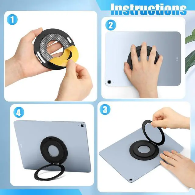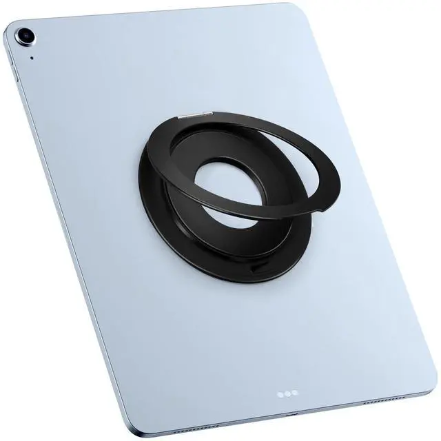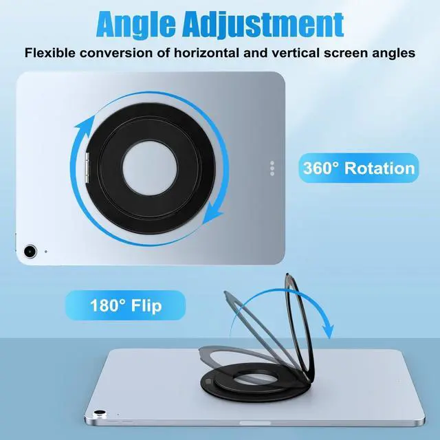 Perfect hands-free convenience and enjoying modern technology at home ^^ Fully Foldable to Pocket SizeThe Tablet Ring Holder is 4" around diameter, can be folded down flat for easy storage, perfectly fits in the pocket or slip into a bag. Compact and portable to carry out for travel. Compact and portable to carry out for travel. ^^ Adjustble & Multi-AngleUniversal tablet hand strap holder easily adjust, 360 degree rotatable, 360-degree tablet rotation, and 180-degree tablet tilt supporting both vertical and horizontal viewing. Stand for Tablet was made of performing aluminum alloy polycarbonate and ABS polymers, higher strength, lighter weight.