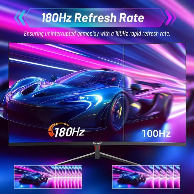 1800R Curved Gaming Monitor Experience immersive 1800R curvature that fills your peripheral vision, expands field of view, and maximizes engagement for gaming or movies. ^^ 180Hz Refresh Rate & 1ms Response Time Revolutionize gameplay with ultra-smooth visuals, reduced input lag, and zero screen tearing. Flicker-Free + Low Blue Light prevents eye fatigue. ^^ FHD 1080P Resolution & 3000:1 Contrast Vibrant colors, deep blacks, and brilliant whites deliver realistic gaming visuals. Enhanced contrast reveals critical details in dark scenes.