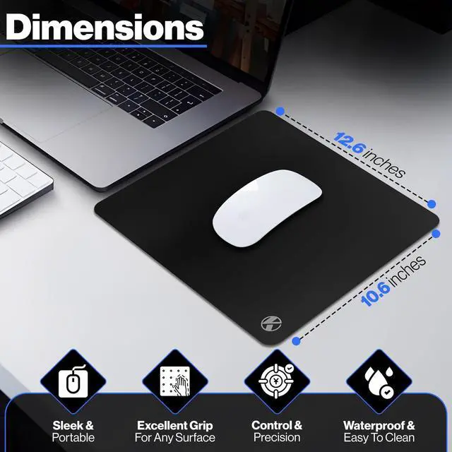 KOVEHN Metallic Coated Hard Surface Mouse Pad (L) - High Performance - Strong and Durable - Smooth Glide Surface Friction, Non-Slip Thin Mousepad for Office and Gaming (Metallic Black)