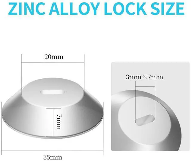 The kit includes 5 security plates, 5 alcohol pads, and 5 3M adhesive tapes, each security plate has a Kensington compatible slot, can be used with Loradar laptop / laptop locks, and can be used with most T models The pole and cable lock are used together. The size of the safety plate is 1.98" * 1.98" * 0.24. This product is made of high-strength Zinc alloy. The product is strong and durable. The surface is plated with bright chrome. It can withstand a 72-hour neutral salt spray test.