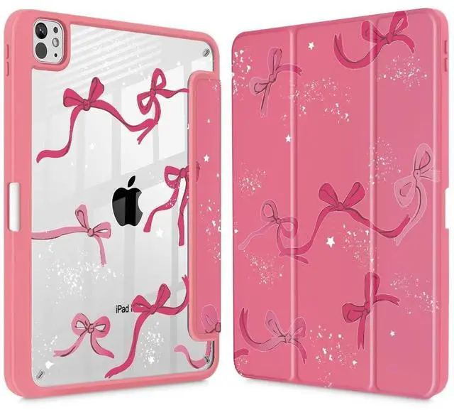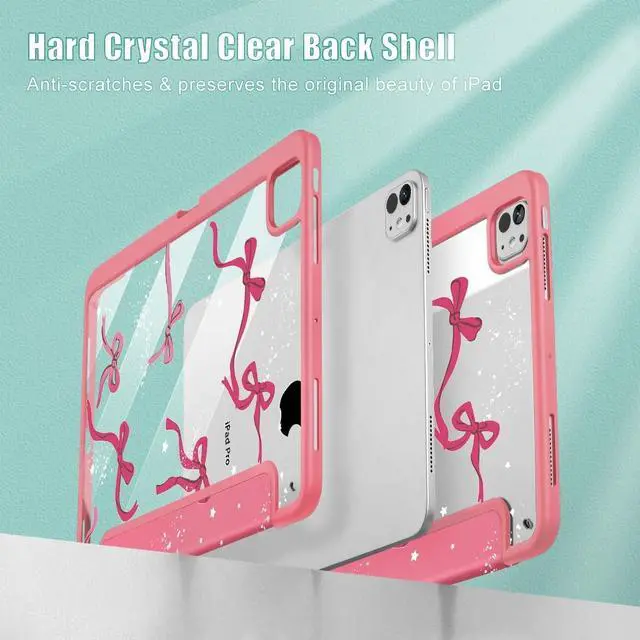 Tuiklol Case for iPad Pro 11 Inch (M4) 2024 5th Gen, Buit-in Pencil Holder with Clear Back Cover Protection Trifold Stand-Auto Wake/Sleep Tablet Case Model:A2836/A2837/A3006,Bow-Watermelon Red