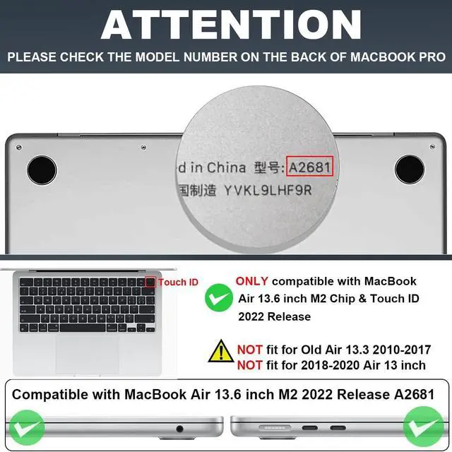 ONLY compatible with Newest MacBook Air 13.6 inch Model A3240 M4 / A3113 M3 / A2681 M2 (with Liquid Retina Display & Touch ID, 2022 2023 2024 2025 Release).