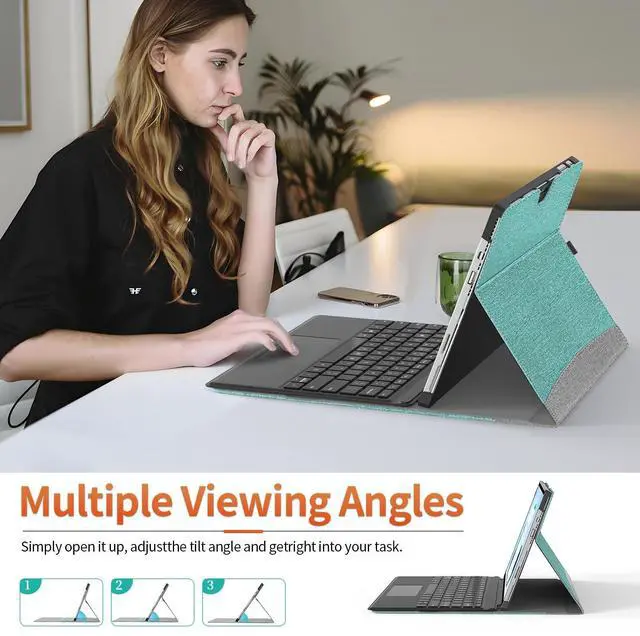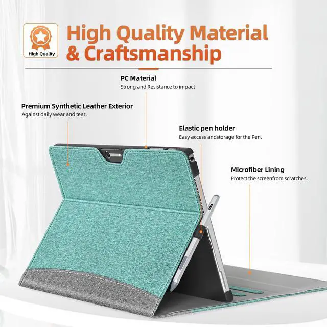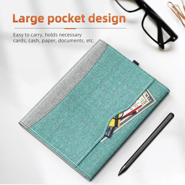 SSSGRGB Case fit 12.3 in Microsoft Surface Pro 7/7+/ 6/5/ 4, Multiple Angle Viewing Portfolio Business Cover with Stylus Holder & Pocket, Compatible with Type Cover Keyboard, Green