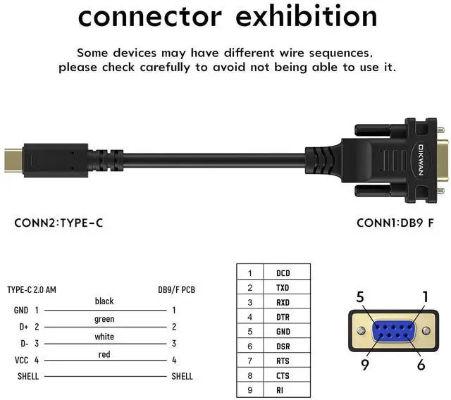 Connectors: USB Type C male, RS232 DB9 Female, USB Type C 2.0 male to USB DB9 9PIN Female ^^