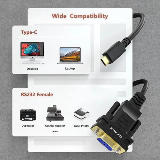 Please NOTE: this is FEMALE Type-C RS232 to DB9 SERIAL CABLE, Not VGA!!! It is 9 pin, NOT 15 pin!! Look carefully of the Pin is match with your device. Before ordering, please confirm the interface gender is waht you need. After receiving, please read user manual /instruction at first and download the Driver at first from FT232 Official website or Cisco website. Customer service always online. ^^ Use USB-C transfer rate up to 1Mbps to RS-232 converter to realize data transfer between PC or laptop with USB Type C port and RS-232 device, allows your PC or laptop to connect RS-232 serial devices and programs that communicate through COM ports, No external power source is required ^^
