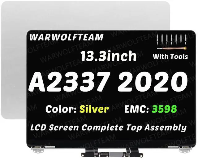 WARWOLFTEAM LCD Screen Display Full Top Assembly Compatible with MacBook Air 13" M1 2020 A2337 EMC 3598 MGN63 MGN93 MGND3 MGN73 MGNA3 MGNE3 2560 x 1600 661-16807 661-16806 661-16808(Silver)