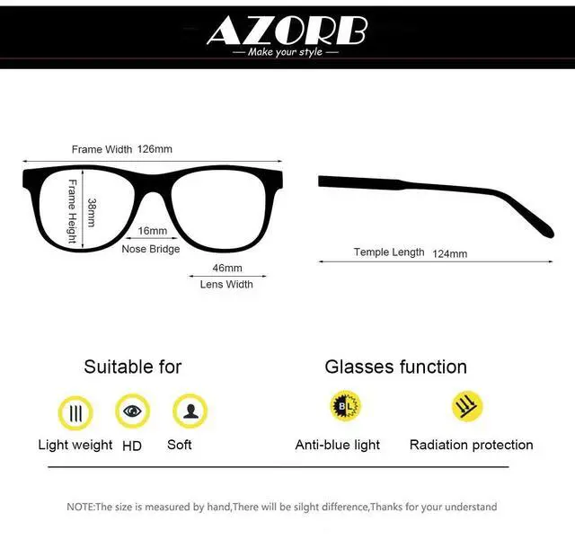 Let children become fashionable little masters while protecting their eyesight, and enhance their willingness to wear eyeglasses. ^^ Precise Optical Design for Clear VisionIn terms of optical design, these eyeglasses are perfected. The lenses are professionally polished to provide clear and realistic vision for children, ensuring that they will not experience visual distortion or blurring when reading, writing or observing the surrounding environment. ^^ Exquisite PackagingComes with premium microfiber pouch, microfiber cleansing cloth, Mini-screwdrivers and store tag. If anything wrong, please do not hesitate to reach out to us.