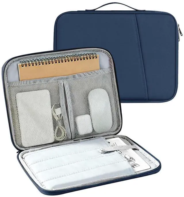 1. Ample Storage, Stay OrganizedTwo large pockets and a mesh pocket keep your tablet, charger, and accessories neatly arranged. 2. Smart Multi-Purpose DesignIncludes a pen loop perfect for business, school, or daily use. 3. Reliable Shock ProtectionSoft padded lining absorbs impact and prevents scratches or drops. 4. Lightweight and Easy to CarryComes with a handle for effortless portability ideal for commuting or travel. 5. Water-Repellent and Durable FabricMade from wear-resistant, water-repellent material that stays clean and lasts longer.
