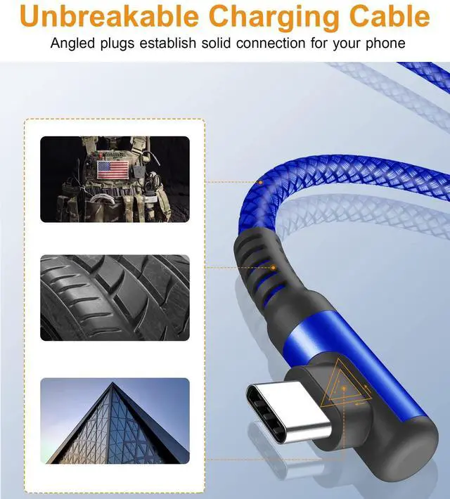 USB-C Right Angle Design]: This right angle type c charging cable fast charge with an innovative 90 degrees " L " design. It's user-friendly design more convenient and comfortable for playing games, watching videos, reading e-books when you charging. ^^ [Last 10X Stronger and