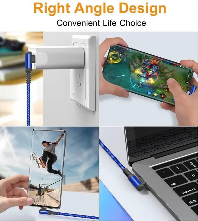 • [Upgraded USB-C Right Angle Design]: This right angle type c charging cable fast charge with an innovative 90 degrees " L " design. It's user-friendly design more convenient and comfortable for playing games, watching videos, reading e-books when you charging.