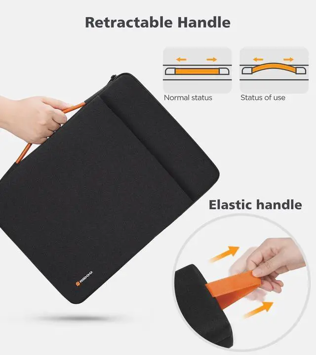 Accessory bag: 17 x 11 x 4.5 -5 cm / 6.7 x 4.3 x 1.8 -2 inch. ^^ Splashproof & Scratch ResistantThe laptop sleeve is made of splash-proof material to protect your laptop from accidental spills; The interior with a high-quality fleece lining absorbs the bumps and shocks and protects your laptop from accidental scratches and abrasions. ^^ ProtectionA thick inner strip on the right side of the laptop bag (at an angle of 90) protects your laptop from scratches provides partial impact protection, so that your laptop is fully protected. ^^ Accessory pocketThe front compartment can hold small items such as mobile phones, iPad mini, tablets, mice, mouse pad, chargers, etc. Electronic accessory bag can store power bank, or can also be used as stationery bag, cosmetic bag, etc. As long as you follow your imagination.
