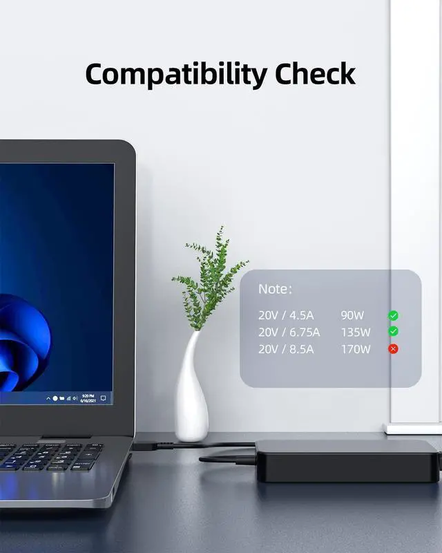Output: 135W, 20V 6.75A (Fit for Lenovo 120W laptops perfectly);