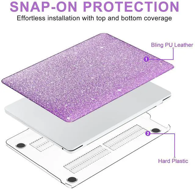 Case Only compatible with Newest MacBook Air 13.6 inch 2025 2024 2023 2022 Release M4 M3 M2 Chip with Liquid Retina Display & Touch ID (Model: A3240 A3113 A2681). Please kindly check the model number "A3XX" on the back of the laptop before your purchase. Not compatible with other MacBook models ^^ Made of bling premium PU leather coating durable plastic to provide your Laptop with great all round protection. Compact design matching flash shining purple color with comfortable touching make your device fashionable and attractive ^^ Cut out design, Logo shine through from the top case. Full access to all buttons and features. Snap on design, easy to put on and snap off. All ports are accessible without removing the case ^^ The perfectly matched vent slots in the bottom girly case to keep your laptop cool. Tailored for macbook air m4 13 inch case, four rubberized feet keep your device firmly in place ^^ Including 1 shining purple top case, 1 matte clear bottom case and 1 purple keyboard cover. If you have concerns about the products quality, our customer support team is ready to help with any issues or questions