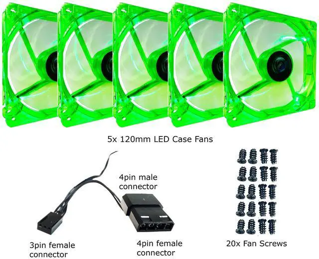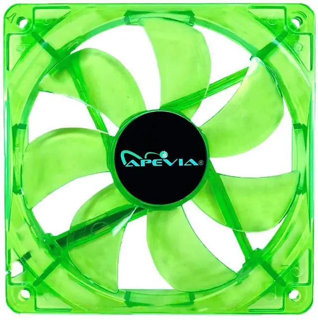 Improve cooling and airflow to your case/system with this Apevia 120mm Green LED fan. The LEDs illuminate the entire fan and create a very amazing effect. It offers incredible cooling to increase the longevity and stability of the system and components. Meanwhile, adds glamour and character to your PC.
