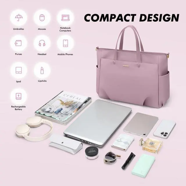 Versatile Design- Our laptop tote bag is thoughtfully designed with two compartments, a dedicated padded laptop pocket, an interior slip pocket, and a zippered pocket. This practical structure ensures you can easily organize and access your essentials while on the go. ^^ Spacious and Secure- With dimensions of 14.96" x 11.8" x 4.72" /38 x 30 x 12cm, our tote laptop bag is perfectly sized to accommodate a 15-inch thin laptop. The multiple compartments and pockets provide ample space for your laptop, documents, gadgets, and personal items. Travel worry-free knowing your belongings are safe and well-organized.