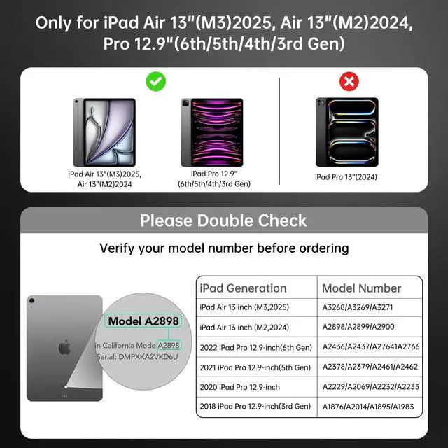 Compatibility: Perfectly designed for the 2024 iPad Air 13-inch (M2), 2025 iPad Air 13-inch (M3), as well as the 2022 iPad Pro 12.9 -inch (6th Gen), 2021 iPad Pro 12.9 -inch (5th Gen), 2020 iPad Pro 12.9 -inch (4th Gen), and 2018 iPad Pro 12.9 -inch (3rd Gen). ^^ 360