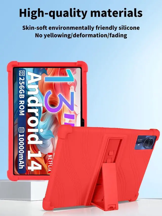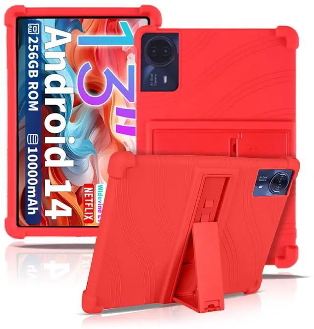 Case for TECLAST T65Max Tablet 13inch,NOUKAJU Tablet Protection Case,Adjustable Bracket,Soft Silicone,Silicone Protection Cover for TECLAST T65Max(Red)