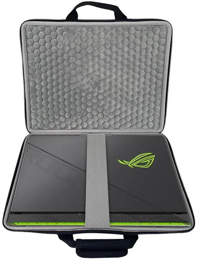 Soft Inner Pad Design: Soft internal pad with hard external surface offers perfect protection for your 18inch Asus ROG Strix SCAR 18. There's an elastic strap inside to hold the 18inch laptop in place. ^^ Waterproof and Moisture-proofMade of waterproof nylon canvas fabric, which obstructs water and vapor effectively. Don't worry about getting your 18inch Asus ROG Strix SCAR 18 wet from splashing water or rain. ^^