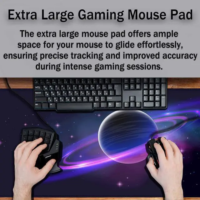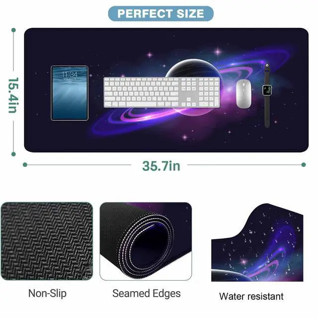 Y YIHANGBEST Blue Purple Planet with Ring Gaming Mouse Pad Nebula and Star Light Sky Large Full Desk Keyboard Mousepad for Computer,Home,Office 35.4"X15.7"