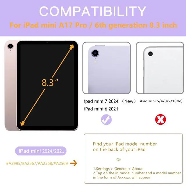 Compatibility: Only designed for iPad Mini 7th/6th Generation Case 2024/2021 8.3 Inch.