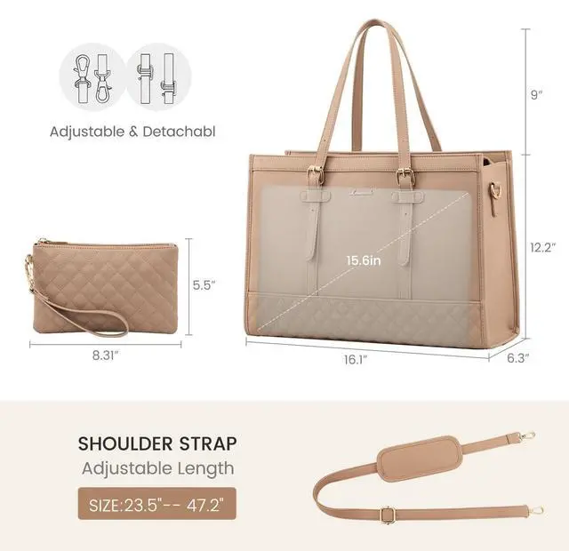 QUILTED DESIGN: The base of the LOVEVOOK tote bag is decorated with quilted elements, clean lines, and exquisite details, exuding classic taste. The slightly shiny PU leather surface protects against water spots and wear and tear ^^
