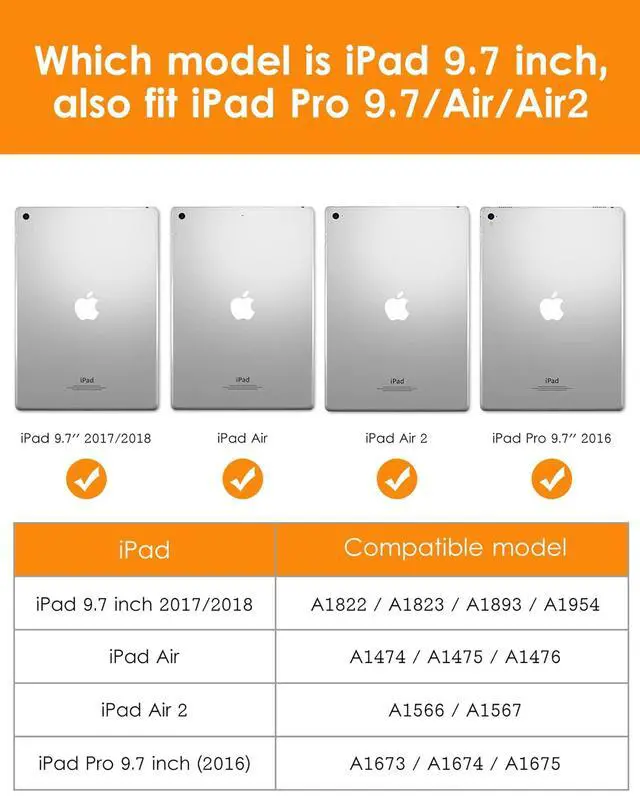 Released(Model Number: A1822/A1823/A1893/A1954), also fit iPad Pro 9.7 inch (Model