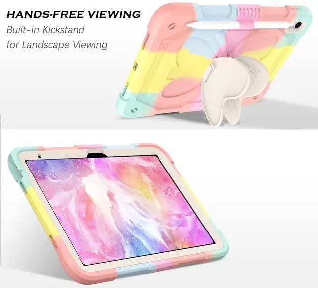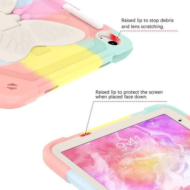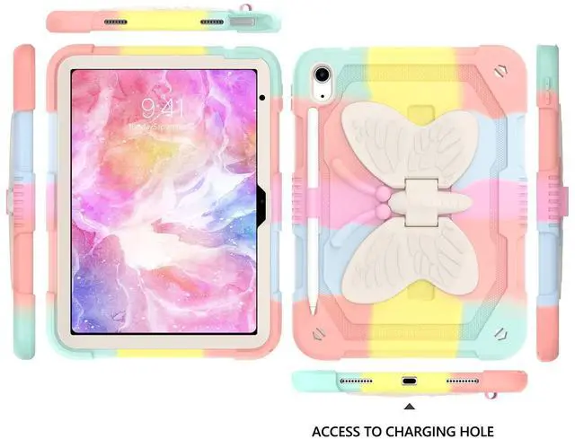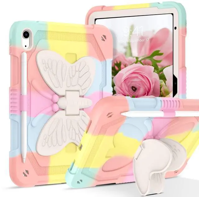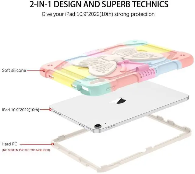 Inch (2022) (Model number: A2696/A2757/A2777), not compatible with other versions. No screen protector. Please confirm your iPad model on the bottom of the back of ipad. ^^ Butterfly Wings KickstandSturdy built-in butterfly kickstand, when you want to typing, gaming or watching video not have to hold the iPad at the same time. Free your hands with this 11th/10th gen iPad case. ^^ Pencil Holder FeatureBuilt-in Apple Pencil holder, can hold your pencil in place tightly (Pencil is Not included). ^^ Precise Cutouts in iPad 11th/10th gen caseThe butterfly stand iPad 11th/10th generation case with precise cutouts ensures all ports like Touch ID, camera, speaker, charging port, which is easy to access all buttons. ^^ Durable MaterialTwo Layer design combines hybrid shockproof material and silicone outer layer with a hard PC cover to achieve the strongest fall protection for iPad. It is the best gift for your iPad 11th/10th Generation.
